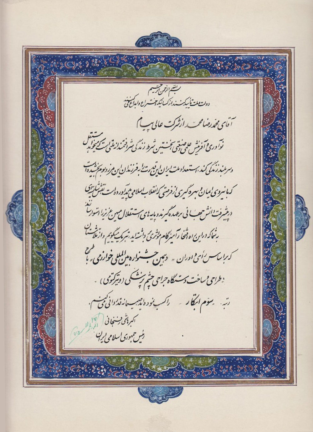تقدیرنامه رئیس جمهور