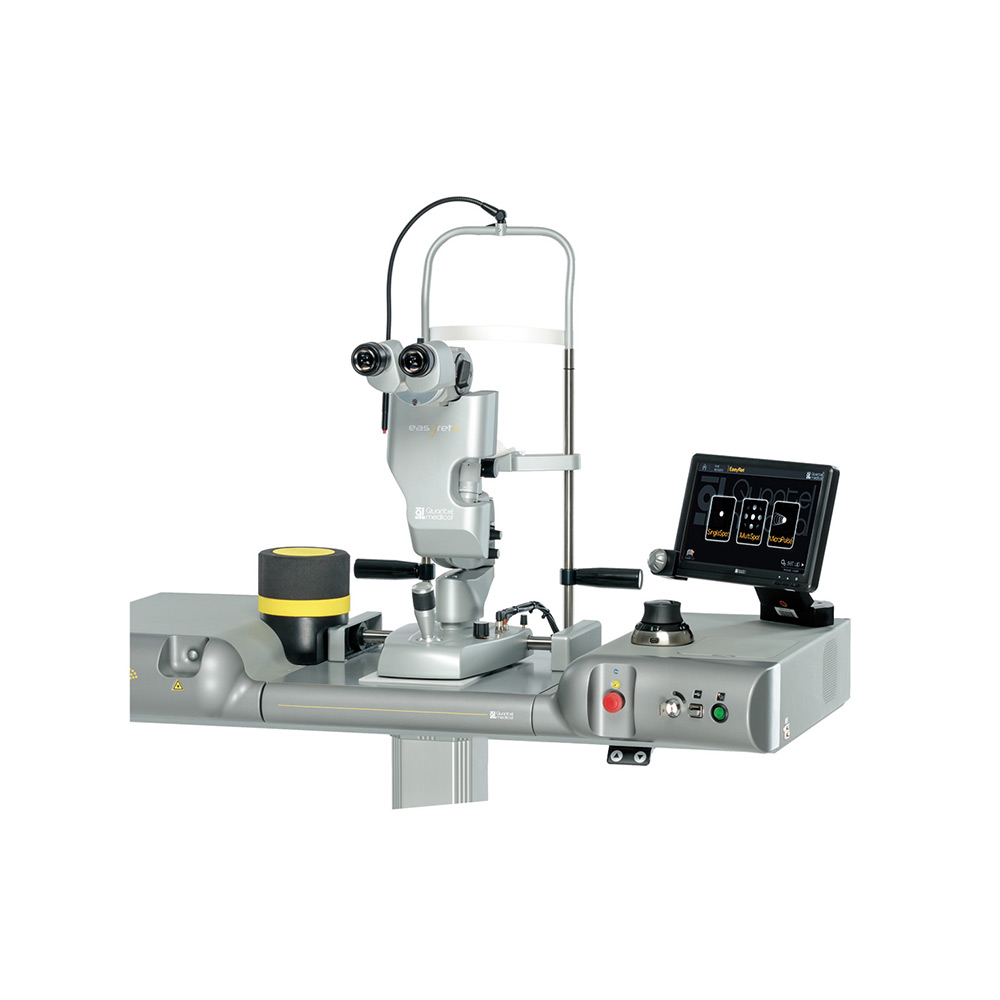 Easyret® is a fully integrated 577nm yellow photocoagulator based on a technological breakthrough: fiber laser technology. Available with Haag Streit or Zeiss type slit lamps, it offers a large choice of treatment settings well adapted to the treatment of macular and peripheral retinal pathologies.